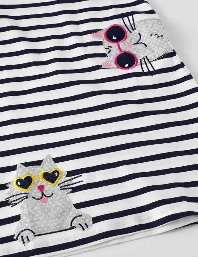 Cats Appliqué Striped Dress