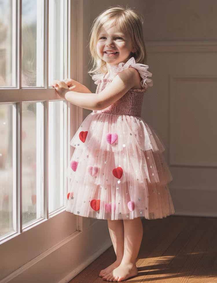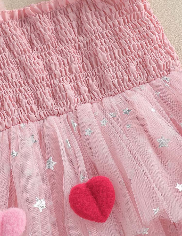 Valentine's Day Heart Applique Multi-layers Tulle Dress